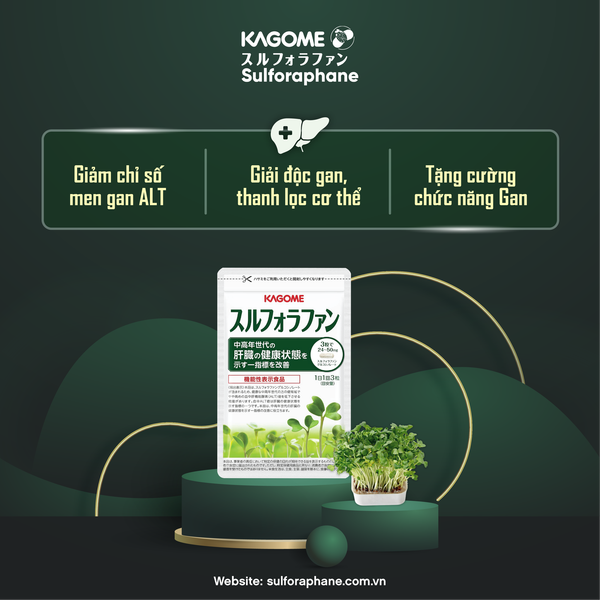 Hiện nay, Sulforaphane đã có mặt trong sản phẩm Sulforaphane Kagome Nhật Bản – dạng viên uống tiện lợi, chuẩn hóa hoạt chất, phù hợp sử dụng hàng ngày để hỗ trợ chức năng gan và tăng sức đề kháng.